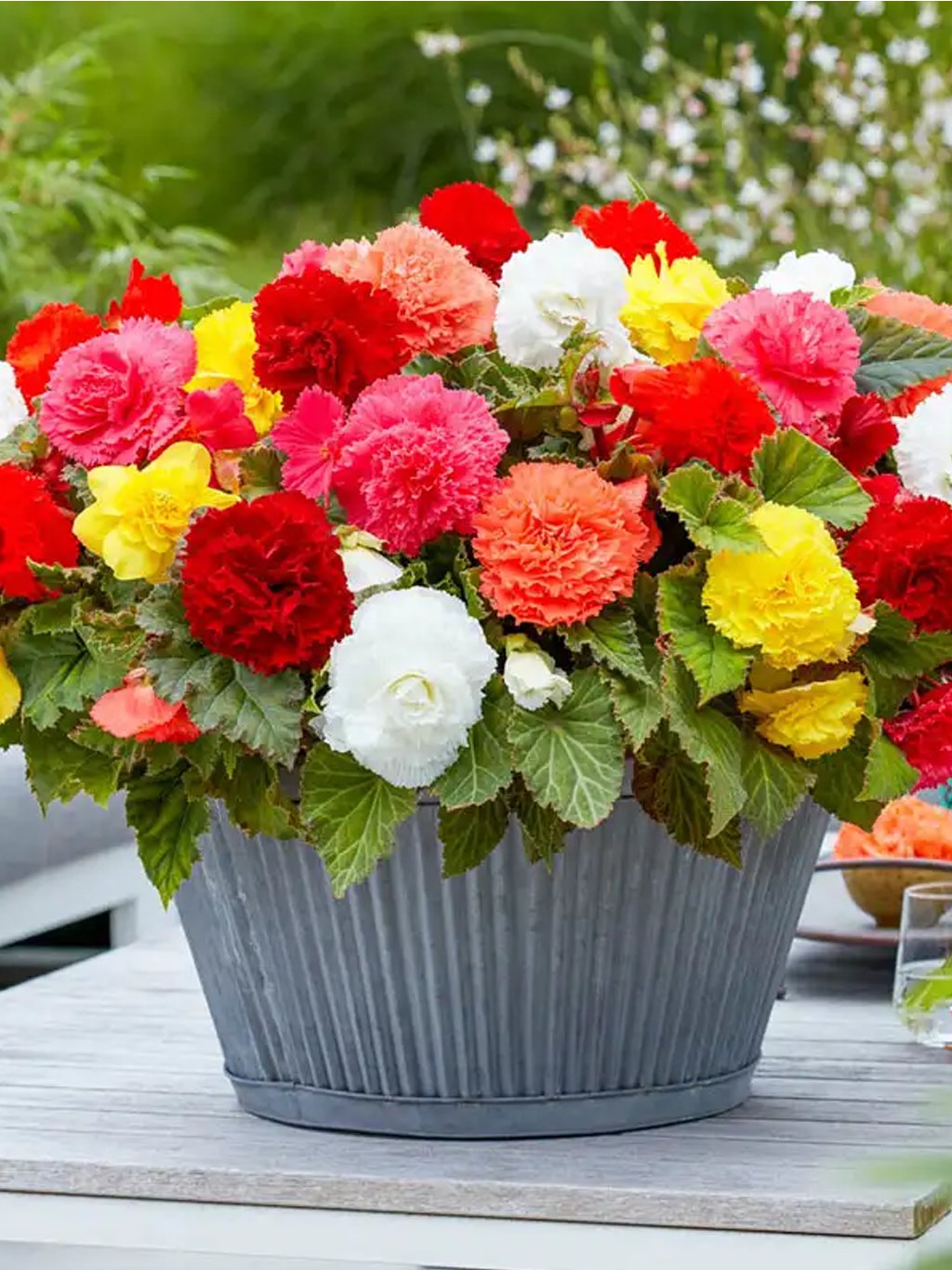 Veľmi atraktívne begónie v pestrej farebnej zmesi s veľkými, strapcovitými kvetmi, ktoré pripomínajú rozkvitnuté klinčeky. Rastliny dorastajú do výšky približne 30 cm, no napriek kompaktnému vzrastu sú bohato obsypané množstvom kvetov v rôznych farebných odtieňoch. Ponúkame kvalitné a zdravé hľuzy.