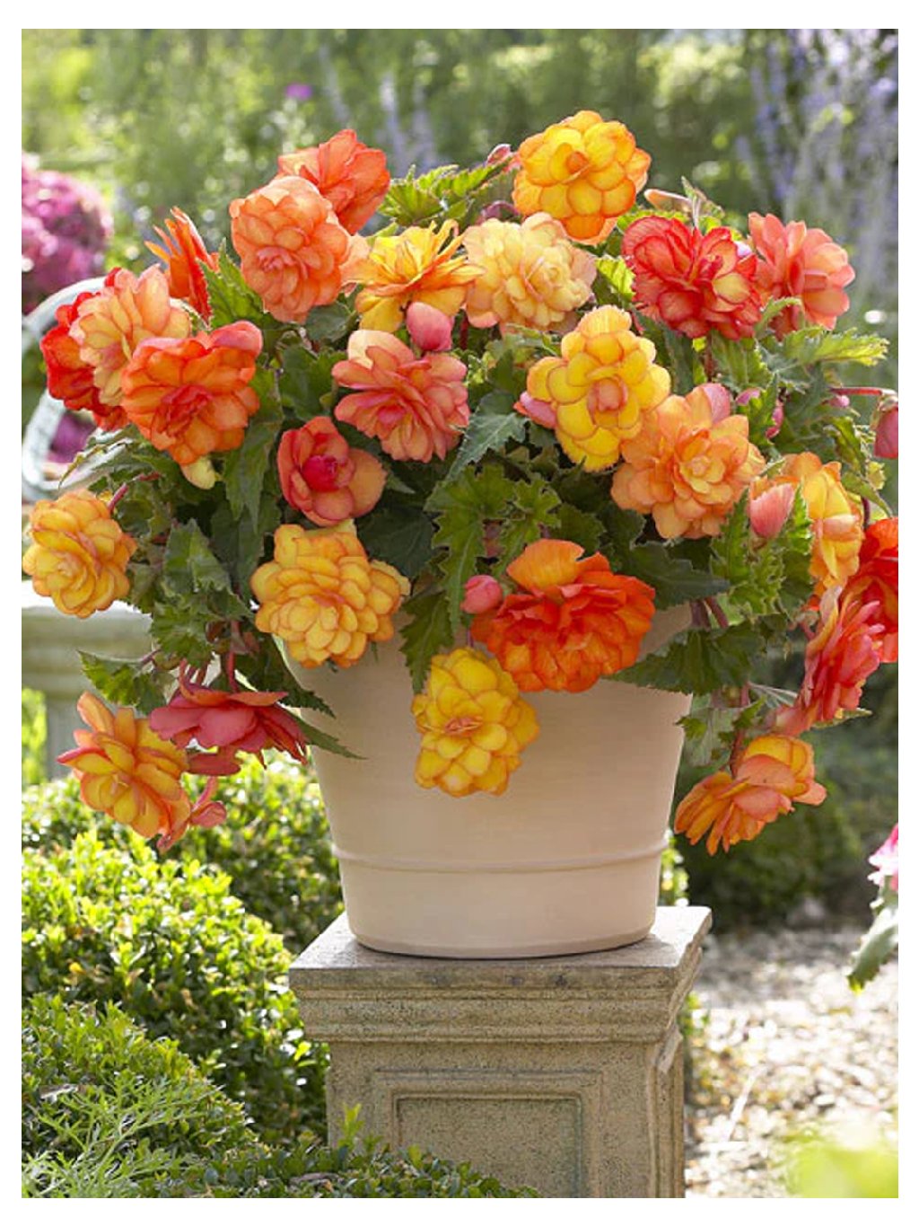 - Výber miesta: begónia sa ľahko pestuje v závesných nádobách, kvetináčoch alebo balkónových nádobách. Jej starostlivosť nie je náročná, potrebuje len čerstvý vzduch, vodu a veľa slnečného svetla. Priame slnečné žiarenie však nemá rada, preto jej môžeme vybrať aj polotienisté tienisté miesto. Ideálna teplota pre rastlinu je 15-20°C. Pri výsadbe je dôležité, aby bola horná časť hľuzy na úrovni zeme.