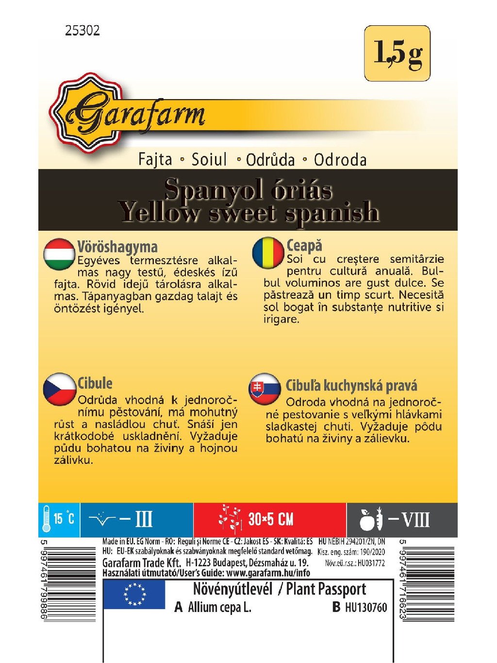 Dlhodenná odroda jarnej cibule vytvárajúcej podlhovasté, tupo zakončené cibule, ktoré sú ideálne na krájanie na kolieska. Allium cepa / Cibuľa.