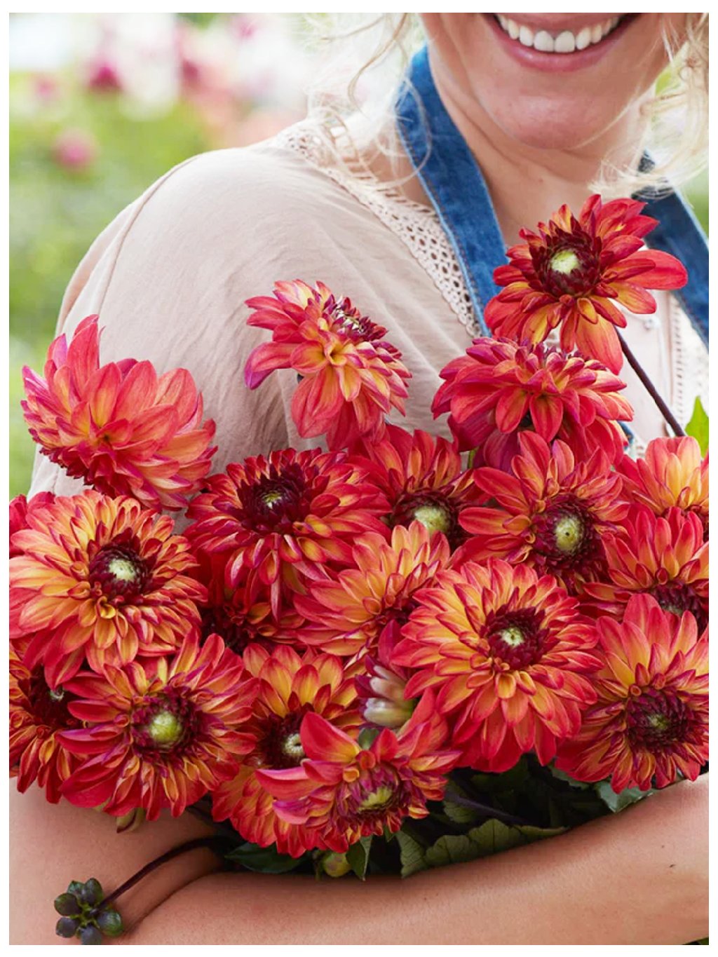 Guľovitá dália, ktorá zaujme svojimi výraznými kvetmi v teplých jesenných tónoch. Kvety majú zlatožlté lupienky, ktoré smerom ku končekom plynulo prechádzajú do sýtej červenej farby. Tento farebný prechod dodáva kvetom hĺbku a nezameniteľný dekoratívny efekt, vďaka ktorému je táto odroda výrazným prvkom záhonov aj kytíc.