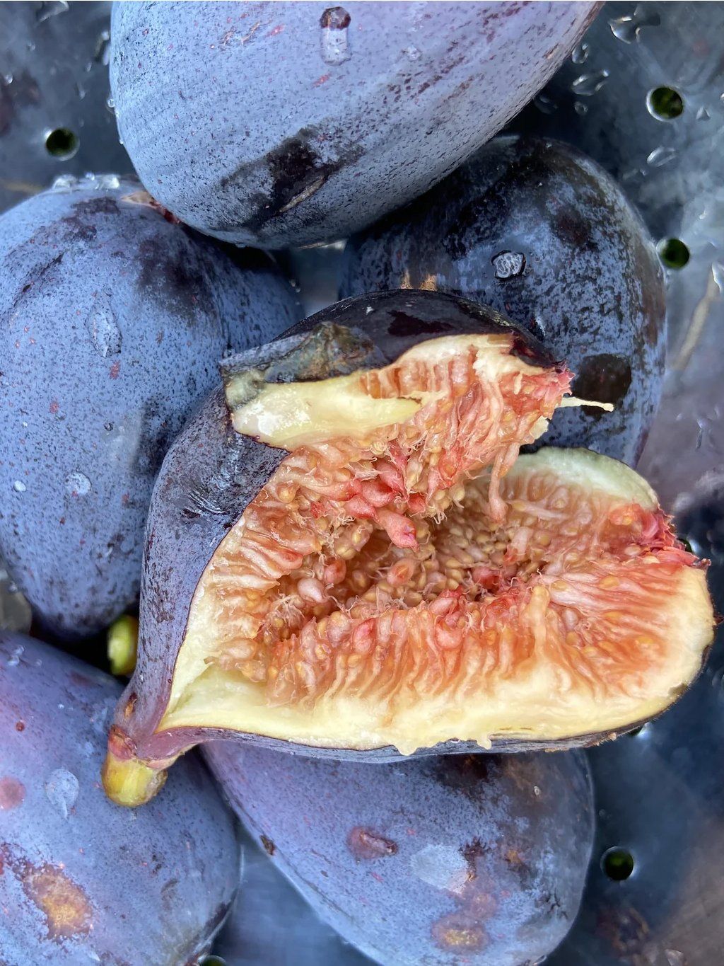 | Plody | sú veľké, čierno fialové. Dužina je veľmi sladká, chutná, jahodovej farby. Čerstvé figy sú sladučké ako med a majú mäkkú dužinu |