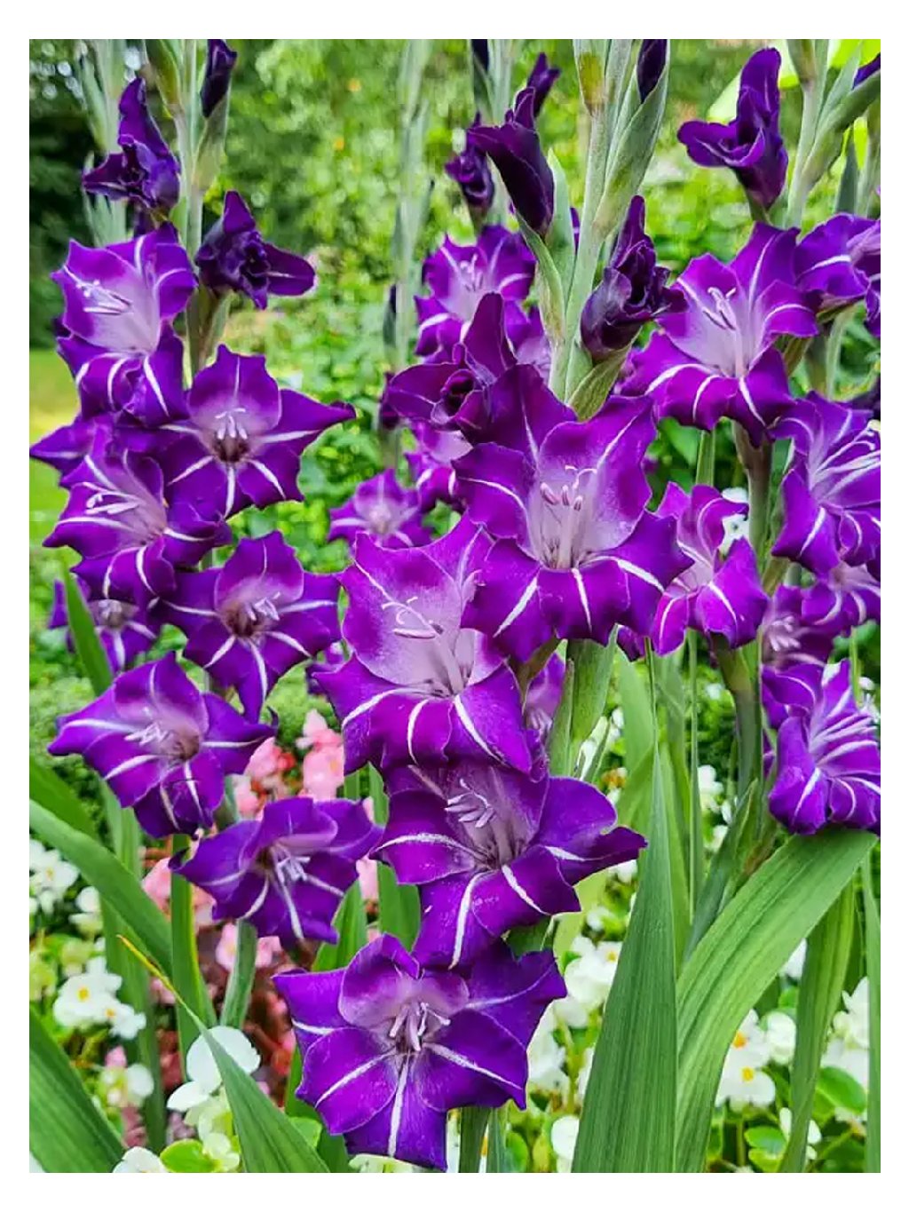 - Starostlivosť: počas leta pravidelne hnojte rastliny tekutým hnojivom určené na cibuľoviny a hľuznaté rastliny, aby ste podporili kvitnutie. Keď gladioly začnú rásť a kvitnúť, môžu potrebovať oporu, pretože stonky bývajú vysoké a môžu sa ohýbať. Použite drevené, bambusové alebo kovové kolíky na podporu. Odstráňte odkvitnuté kvety, aby rastlina nevyčerpávala energiu na tvorbu semien a sústredila sa na ďalšie kvitnutie.
