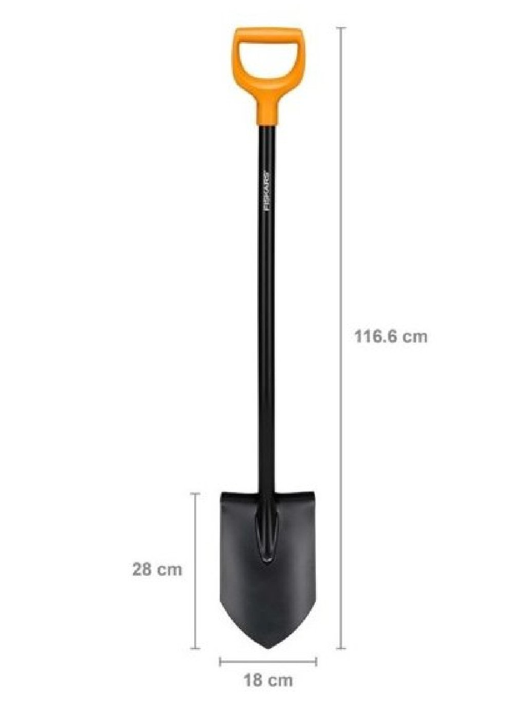 A Fiskars Solid™ szerszámok hatékonyak, könnyen használhatók és megfizethető minőségűek. A Solid™ Gardening Spade Pointed kúpos, éles széle kemény, sziklás talajba való ásáshoz, gyep vagy gyökerek átvágásához.