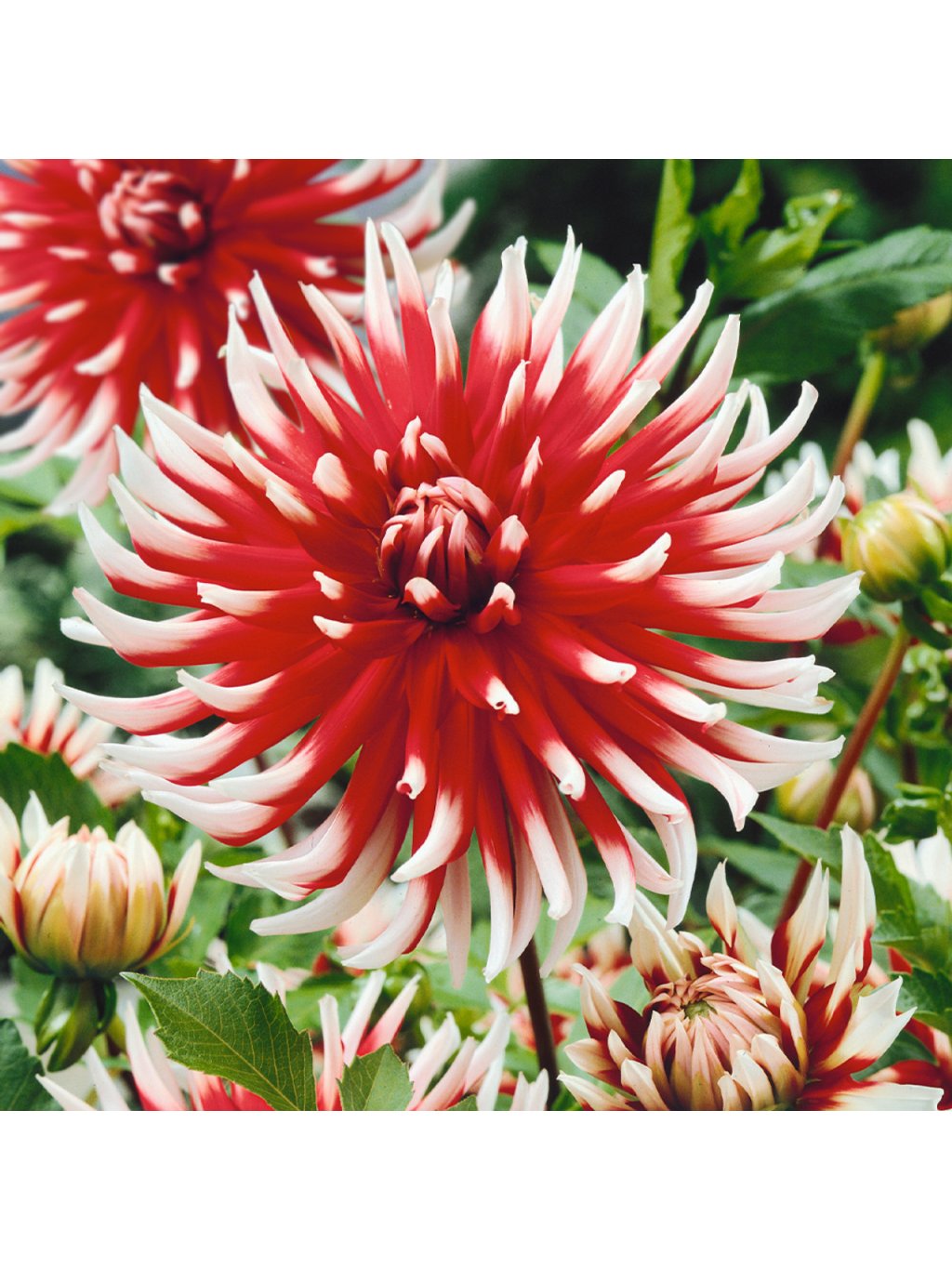 Kaktuszvirágú dáliák keveréke. Ezek a fajták gyönyörű és jellegzetes megjelenésük miatt nagyon népszerűek a kertekben és a virágdíszekben.