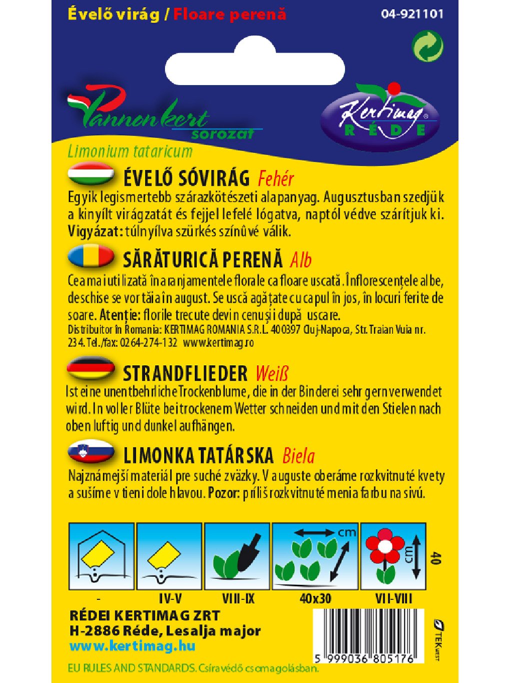 A murvalevelek élénk színe szárítás után is megmarad. Napos fekvést, mérsékelt öntözést igényel.