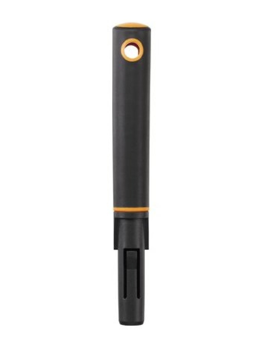 A QuikFit rövid nyél a kényelmes kerti munkákhoz, számos kerti munkához szükséges munkafelszerelés nagy választékával. A Fiskars új cserélhető szerszámrendszere szabadalmaztatott mechanizmussal (FI 20095955 szabadalom), amely lehetővé teszi a cserélhető tartozékok (gereblyék, kultivátorok, kapák, szintezők, stb.) egyszerű rögzítését. Az integrált hüvely segítségével egy húzással könnyen kioldhatók és eltávolíthatók. Csúsztassa az új tartozékot a tengelyvég mechanizmusára, amely egy kattanás jelzi, hogy a csatlakozás biztonságos, és készen is áll a használatra.