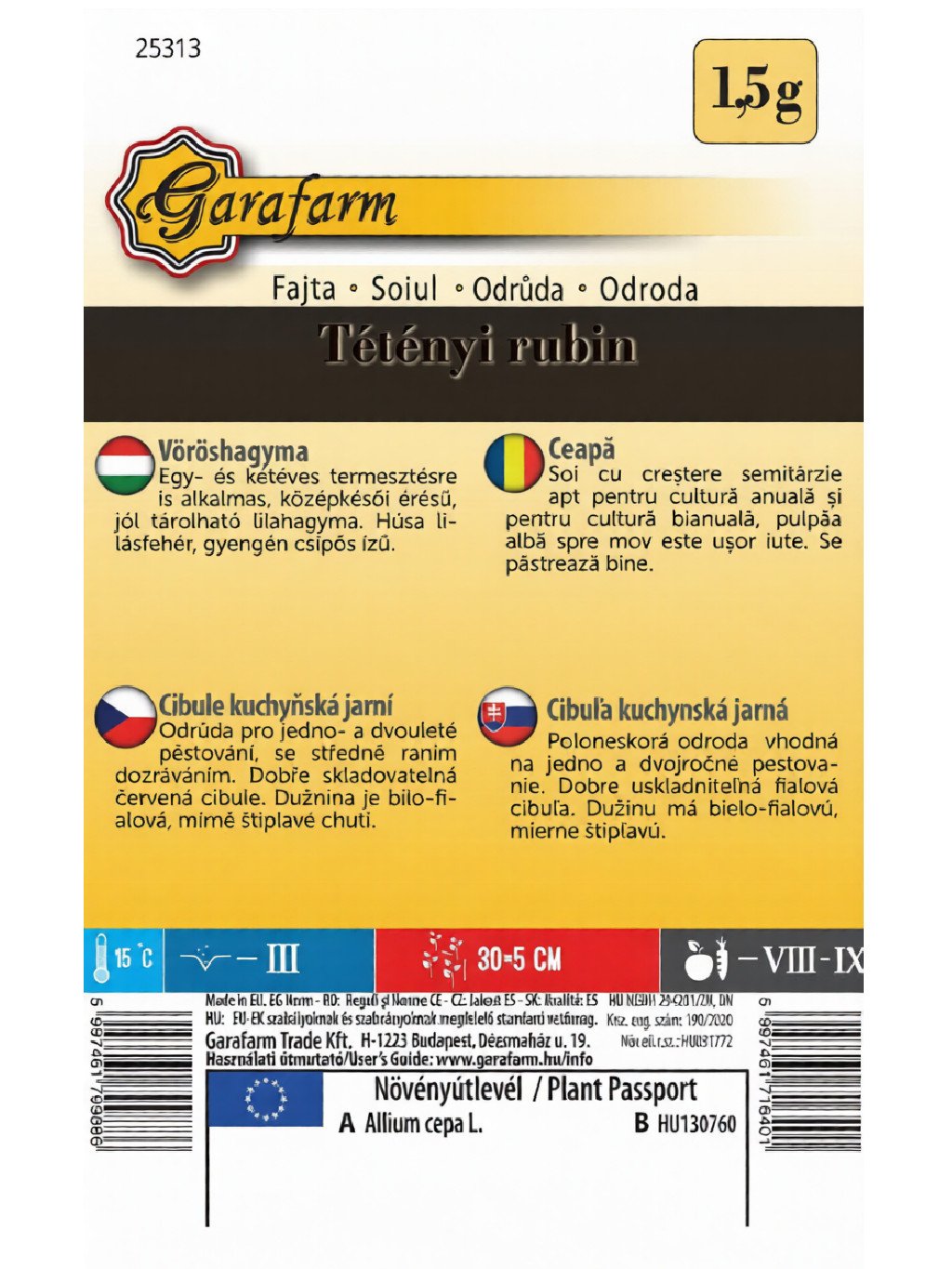 Lilahagyma 'Tétényi Rubin' 1,5g