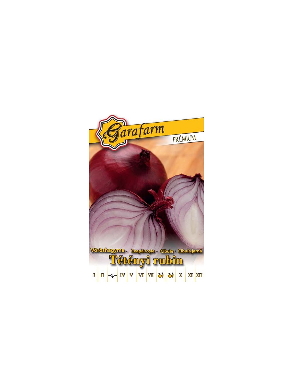 Kiváló minőségű, kerek alakú, aranysárga héjú hagyma.