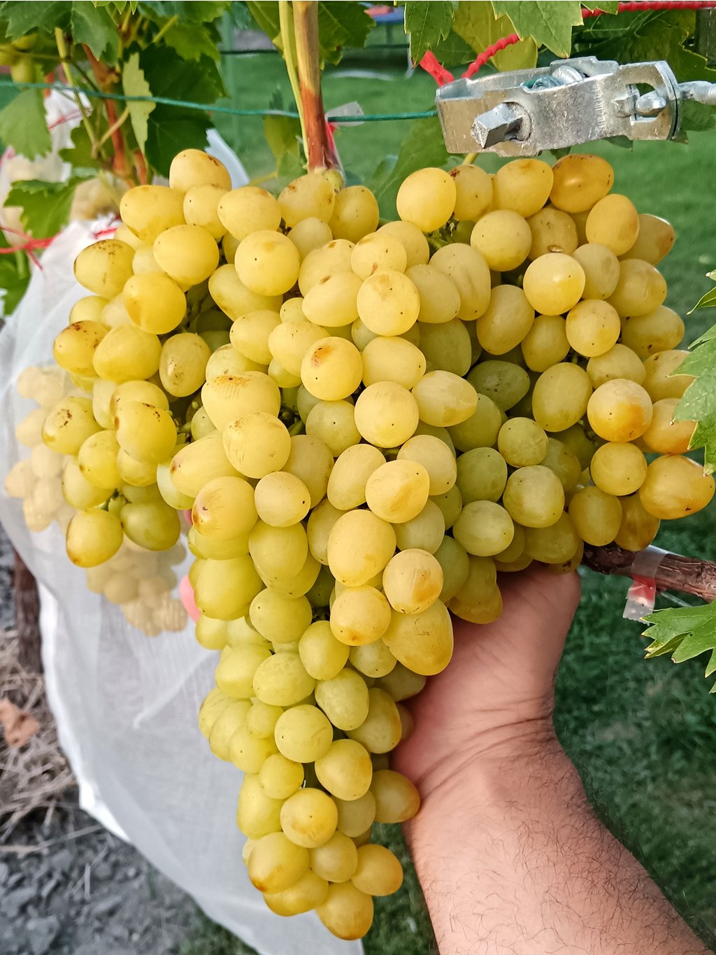 | Termése | Fürtjei nagyok (500 - 700 g), lazák, dekoratívak. Bogyói szintén nagyok (6 - 8 g), aranysárgák. Bőre vékony. Húsa roppanós, lédús, húsos. Íze kellemes, harmonikus, frissítő. Cukortartalma csak 15-16°NM, ezért cukorbetegek számára is ajánlott fajta. |