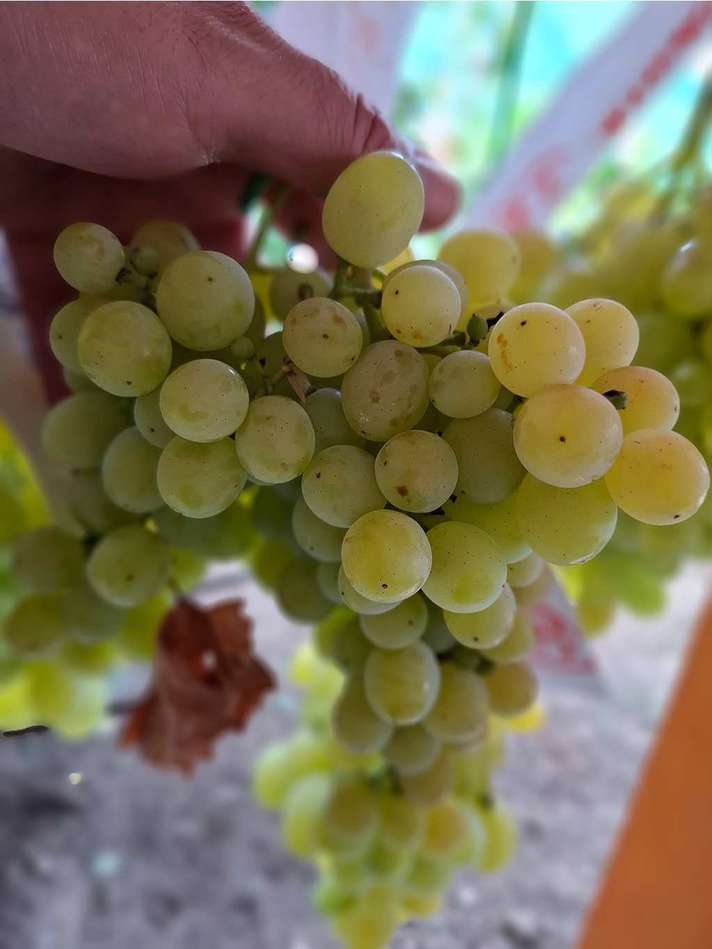 Termése | Fürtjei nagyok, 800 - 1500 g, kúp alakúak, közepesen tömöttek. Bogyói nagyok, 8 - 12 g, oválisak. Bőre vékony. Húsa roppanós, húsos, lédús. Íze édes, kifejezetten muskotályos. |