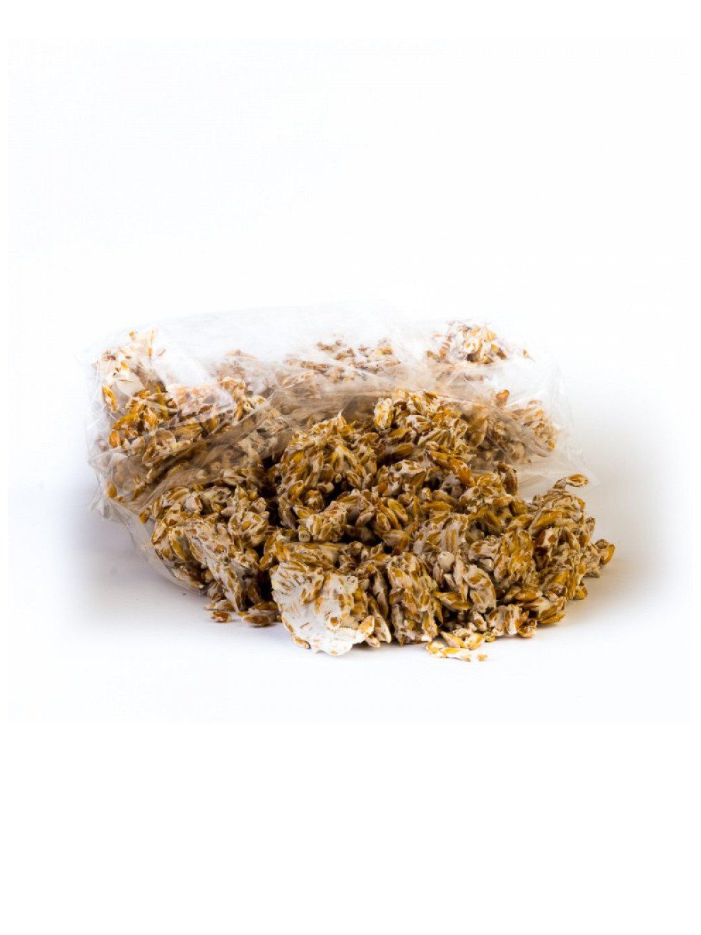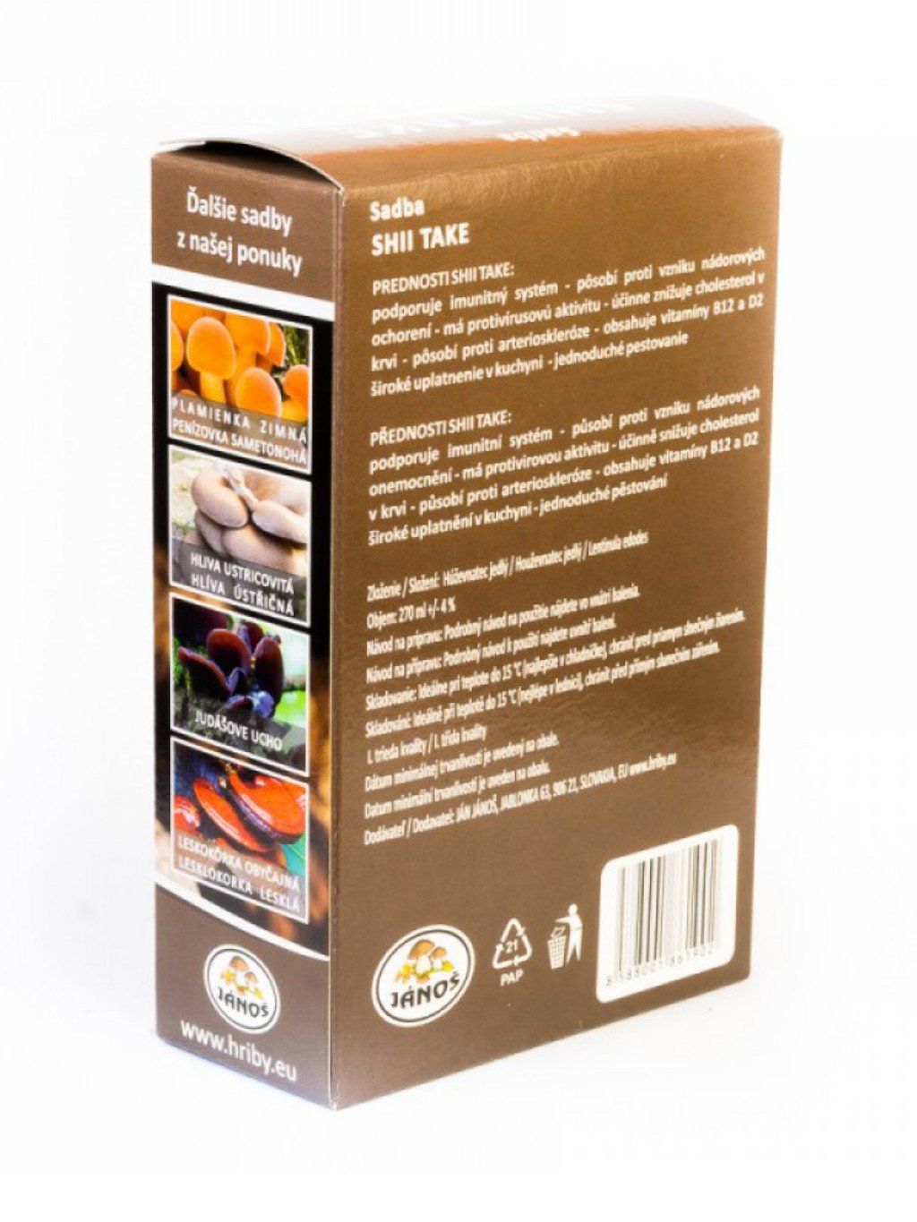 Sadbu rozdrobíme v uzatvoretom vrecku na jednotlivé zrnká. V čistej miestnosti bez pliesní vychladnutý sáčik so substrátom pootvoríme a otvorom nasypeme sadbu v množstve asi 3 % substrátu. Sáčik opäť uzatvoríme cez vatový valček, aby kultúra mohla dýchať.