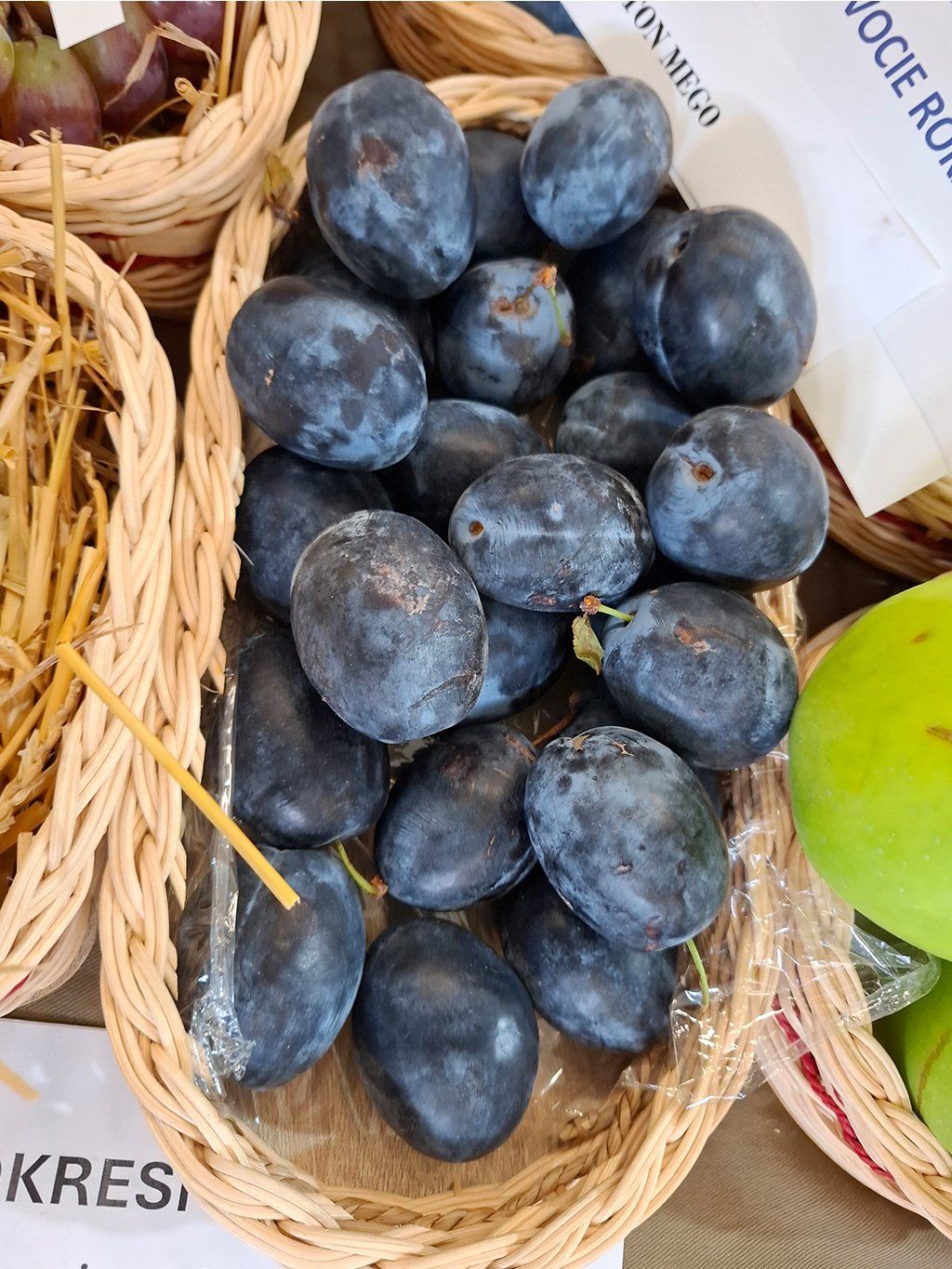 | Plody | sú stredné až veľké (30-45 g), predĺženého tvaru. Šupka je tmavomodrá, s fialovým odtieňom, silne poprášená. Dužina je zlatisto žltá, pevná, šťavnatá, voňavá. Chuť je príjemná, harmonicky sladko-kyslá. Dužina sa dobre oddeľuje od kôstky. |