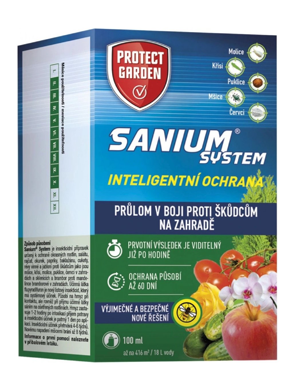 Sanium® System je insekticídny prípravok určený na ochranu okrasných rastlín, šalátu, paradajok, uhoriek, papriky, baklažánu, cukety, viniča a jabloní proti škodcom ako sú vošky, kries, molice, puklice, červce v záhradách a skleníkoch a bramách v záhradách.