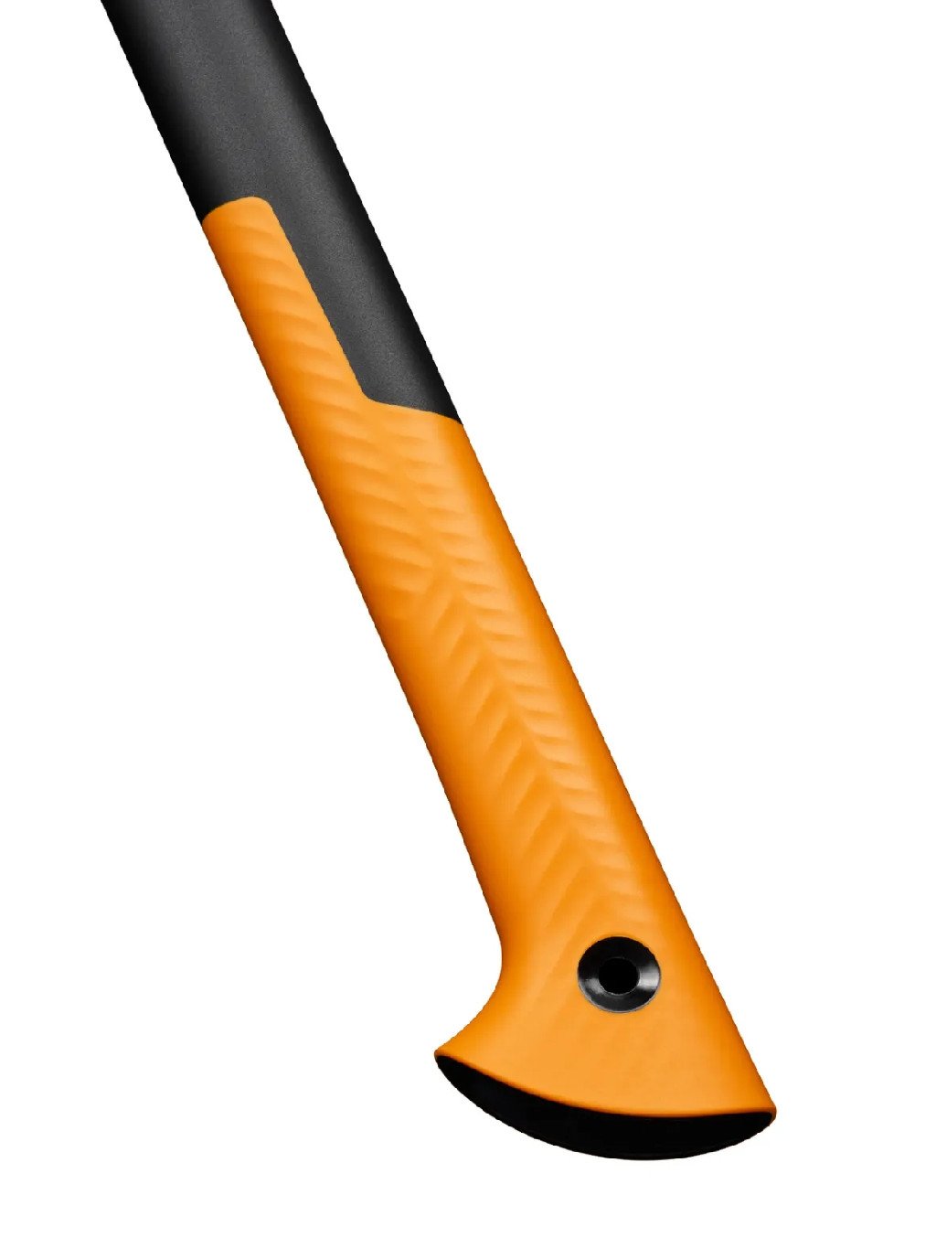 Štiepacia sekera Fiskars X24 je ideálna na štiepanie stredne veľkých polien s priemerom od 20 do 30 centimetrov. Má novú vylepšenú kovanú oceľovú čepeľ so štiepacím klinom, ktorý zvyšuje výkon sekery a uľahčuje vytiahnutie čepele z dreva. Špeciálny výbrus ostria a dvojité zakalenie čepele zvyšuje a predlžuje ostrosť sekery. Povlak čepele znižuje trenie pri prenikaní čepele drevom a chráni ju pred koróziou. Veľmi ľahké a pevné porisko z FiberCompTM je takmer nezlomiteľné. Vynikajúco odoláva chybným úderom, kedy porisko narazí na poleno. Sekera má dokonalé vyváženie, vďaka čomu je zvýšená sila pri údere. Úchopová plocha je veľmi veľká a obsahuje textúru SoftGripTM pre pohodlné držanie a ovládanie štiepacej sekery X24.
