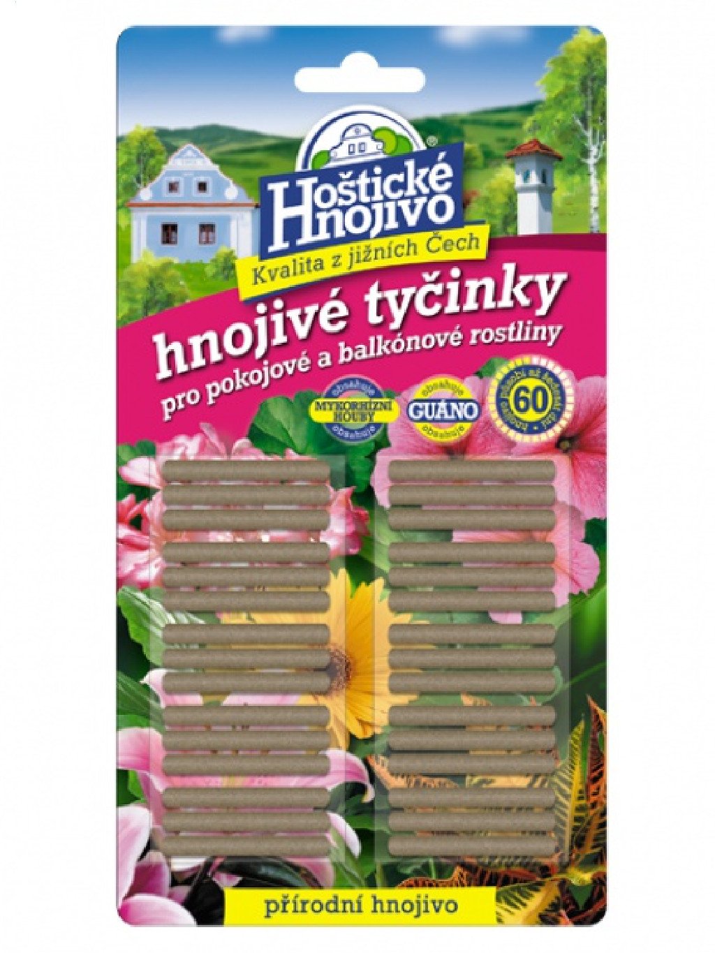 Hoštické tyčinkové hnojivo má široké použitie s priaznivým vplyvom na pestované rastliny. Hodí sa jednak pre izbové, ale pre pomerne vysoký obsah fosforu je obzvlášť vhodné pre balkónové kvety, pri ktorých podporuje bohaté kvitnutie. Mykorhiza má priaznivý vplyv na dobré zakorenenie a zväčšenie objemu koreňového systému rastlín. Guáno pochádza z trusu morských vtákov.