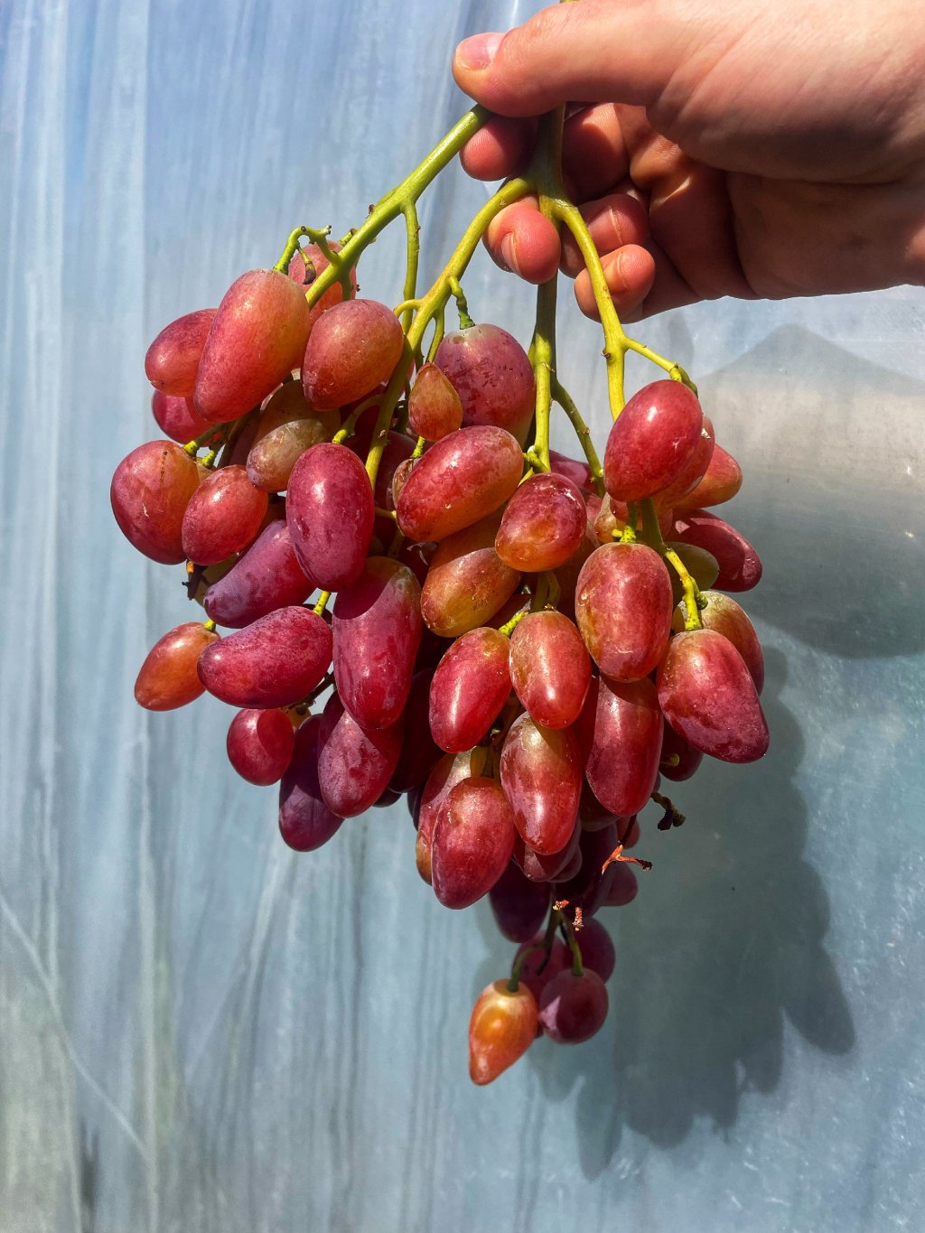 Plody | Veľkosť bobúľ aj strapcov je extrémna. Strapce sú nádherné, veľké 1 - 1,5 kg, stredne voľné. Veľkosť bobúľ je okolo 20 gramov a viac, sú oválne špicaté. Dĺžka jednotlivých bobúľ presahuje hranicu 5 cm. Dužina je mäsitá, šťavnatá a chrumkavá. Pri tejto veľkosti bobúľ je pozoruhodná aj výborná harmonická chuť a chrumkavá konzistencia. Cukornatosť je 17-19°NM. |