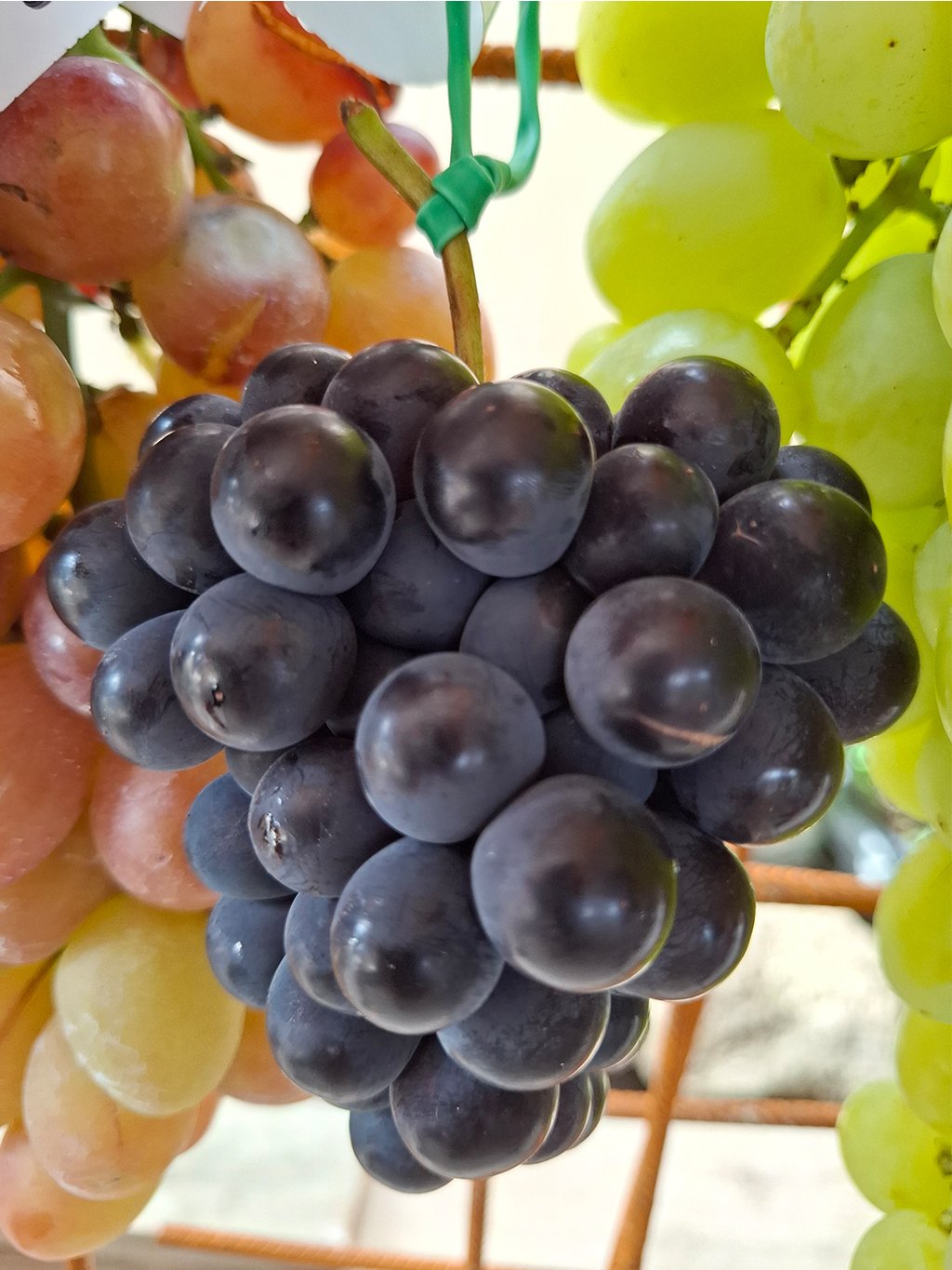 Plody | Strapce sú stredne veľké, v priemere 200 g-ové, valcovité, rozvetvené, stredne husté. Bobule sú stredne veľké, 2 - 3 g, oválne. Dužina je mäsitá, chrumkavá. Šupka je tenká. Chuť je charakteristická, korenistá, pripomína jahody. Cukornatosť je 18-20°NM. |